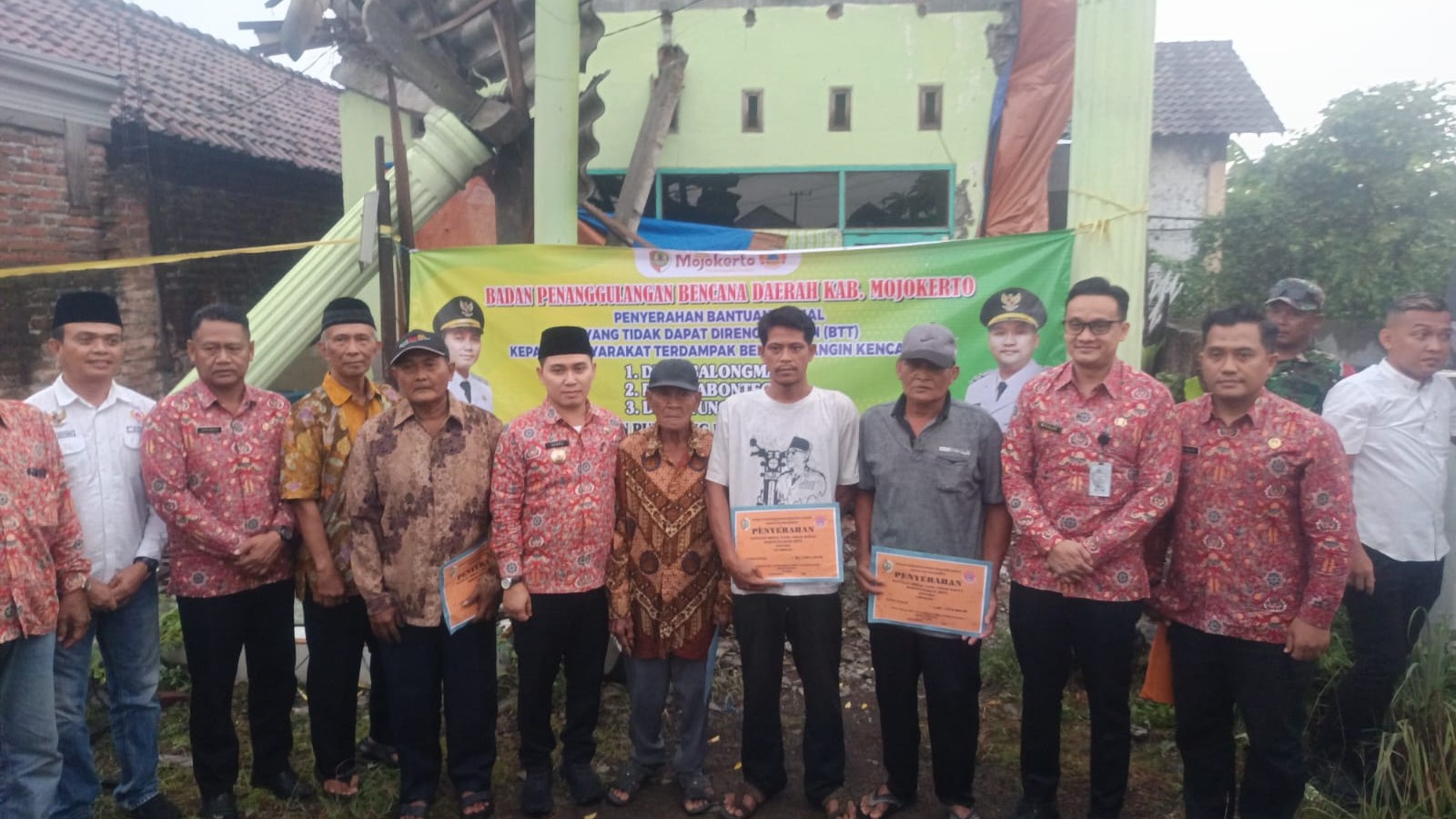 Mojokerto, LINGKARWILIS.COM – Pemerintah Kabupaten Mojokerto menyalurkan bantuan sosial tidak terduga (BTT) kepada warga yang rumahnya terdampak angin puting beliung di Kecamatan Sooko dan Pungging. Total bantuan yang disalurkan mencapai Rp54,2 juta sebagai bentuk respons cepat pemerintah dalam penanganan pascabencana.