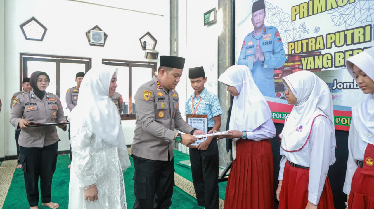 Penyerahan beasiswa dilakukan langsung oleh Kapolres Jombang, AKBP Ardi Kurniawan, di Masjid Agung Junnatul Fua’dah Mapolres Jombang pada Rabu (13/8/2025).