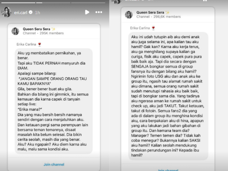 Dalam sebuah unggahan emosional melalui channel grup Instagramnya, Erika Carlina dengan tegas menyatakan bahwa klarifikasi DJ Panda telah menciptakan persepsi keliru di mata publik.